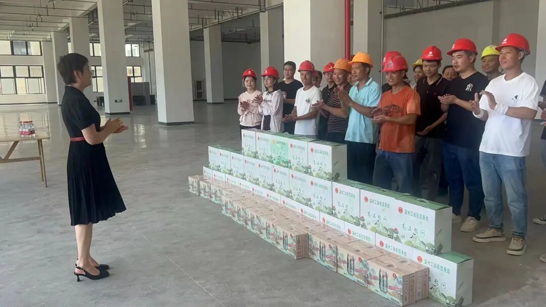 温州市总工会的慰问活动,不仅为正匠员工带来了物质上的关怀,更传递了精神上的鼓励。再次感谢温州市总工会副主席林曙红一行莅临我司天宏项目建设现场开展高温慰问活动。同时也让我们向所有在高温下坚守岗位的劳动者们致以最崇高的敬意,感谢他们的付出。