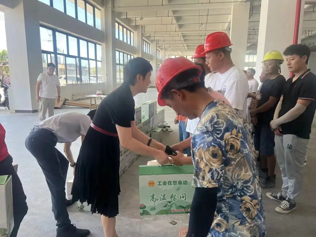 林曙红副主席亲自将慰问品送到了每一位工人的手中,叮嘱他们做好夏日防暑措施,并且感谢他们的辛勤付出。
