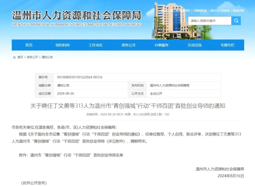 经层层筛选、评审,我司总经理林晓多成功获聘温州市“青创强城”行动“千师百团”首批创业导师,申请类别为领域类导师,聘期两年。