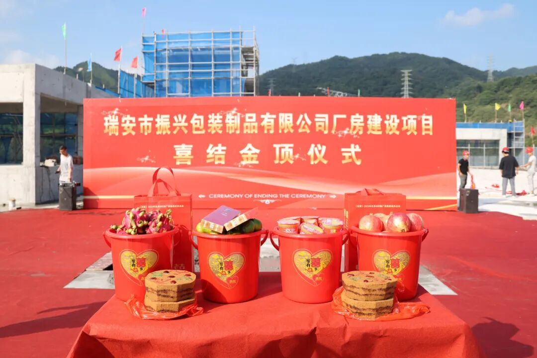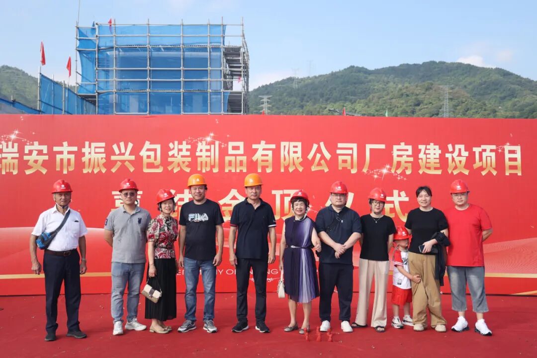 9月5日,瑞安市振兴包装制品有限公司厂房建设项目结顶仪式隆重举行。振兴董事长戴祥勤,正匠建设董事长蔡冷双,以及相关人员出席仪式,齐贺结顶之喜。