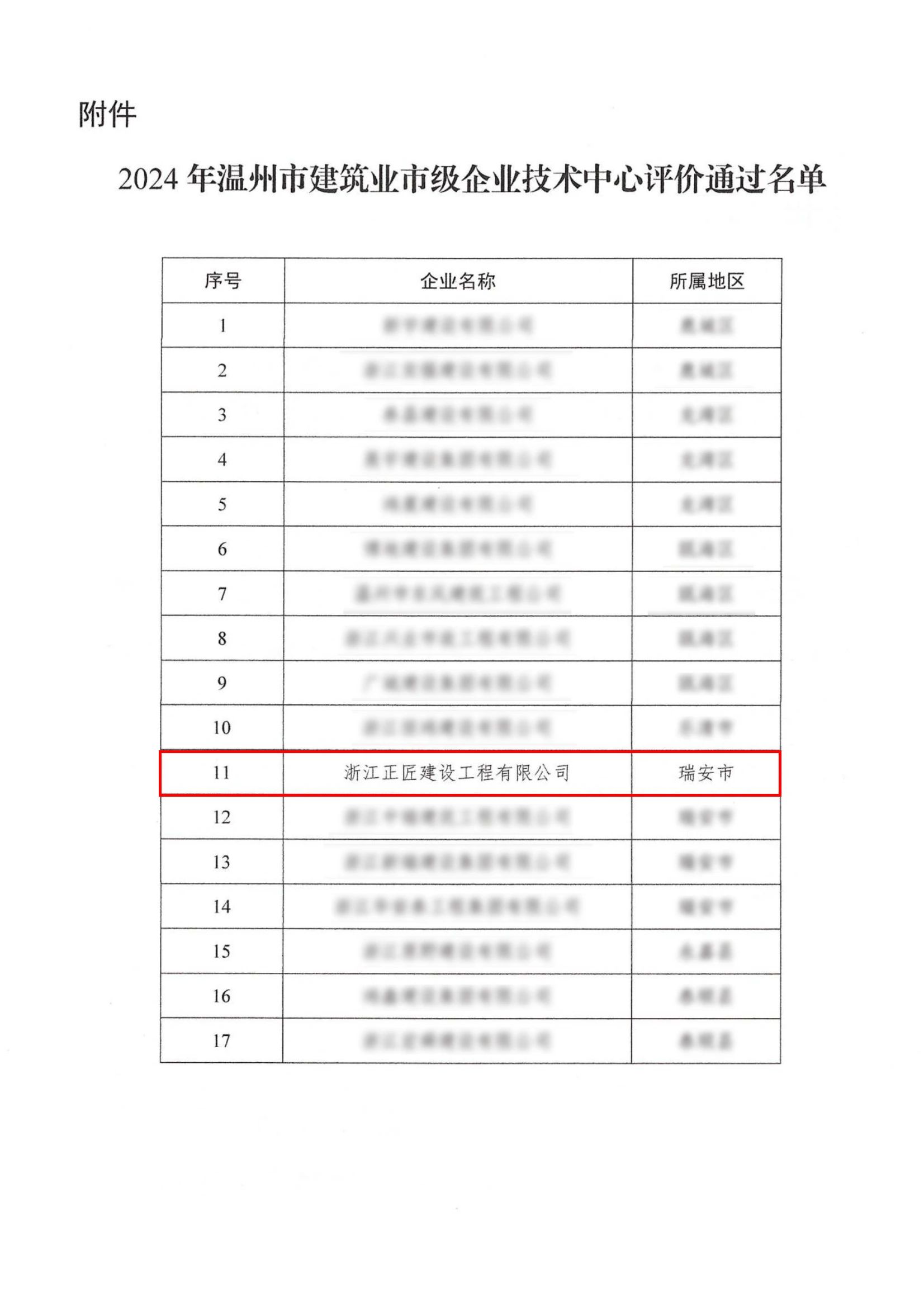 热烈祝贺浙江正匠建设工程有限公司企业技术中心经评审与公示,正式被认定为2024年温州市建筑业市级企业技术中心! 正匠企业技术中心是根据公司战略和可持续发展要求而设立的技术研发与创新平台,是企业的核心智库和研发部门。技术中心搭建企业研发组织架构和创新体系,培养高新技术人才,组建能打硬仗的科技创新队伍,实现科技成果产业化,提高企业核心竞争力,助力正匠实现“以智能建造技术打造数智化企业”的愿景,为社会打造“好房子”赋能添翼。