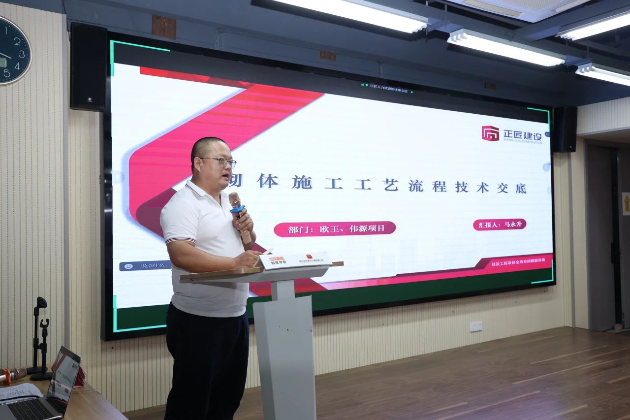 在施工工艺流程分享环节,欧王伟源项目经理马永升分享了《砌砖施工工艺流程》;农事中心项目经理李智高给大家带来《钢结构施工工艺流程》;林海项目经理陈世远给大家带来《粉刷施工工艺流程》;蔚来央璟项目经理刘宁分享《混凝土浇筑施工工艺流程》;鼎龙项目经理凌利洪分享了《旋挖灌注桩施工工艺流程》;八达项目经理江波分享了《回旋钻桩施工工艺流程》;鸿福项目经理洪小君分享《鸿福项目工作汇报及桩基施工控制要点分享》,为项目施工质量把控提供了宝贵经验。