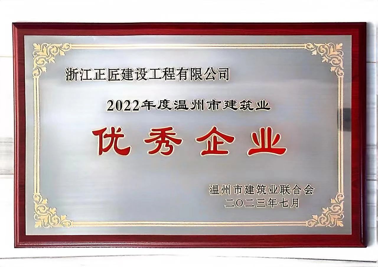 喜报 | 热烈祝贺我司荣获“2022年度温州市建筑业优秀企业”荣誉称号!