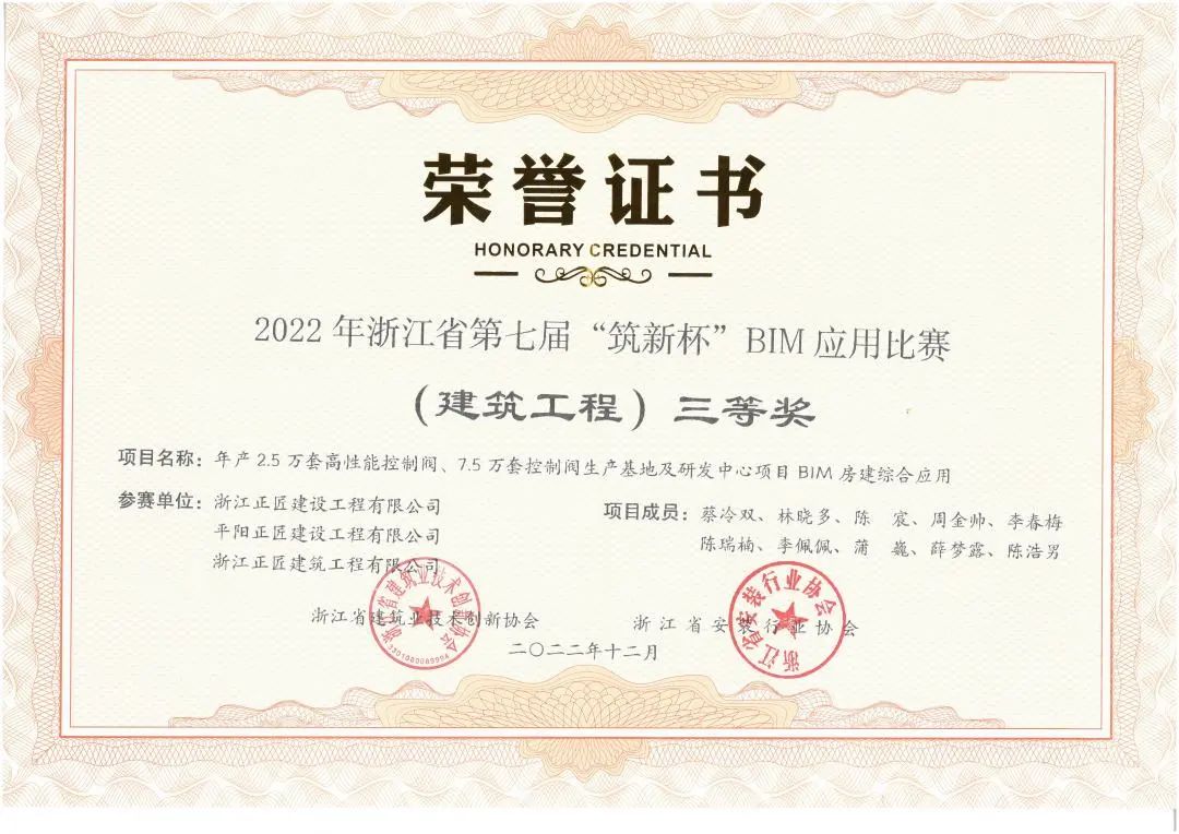 喜报 | 我司项目团队在浙江省第七届“筑新杯”BIM应用比赛中荣获(建筑工程)省级三等奖!